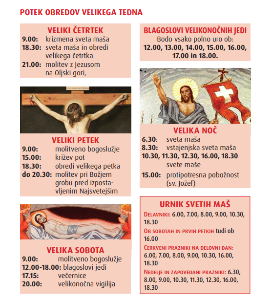 Cvetna nedelja – velika sobota: od 7.00 do 12.00 in 16.00 do 19.00