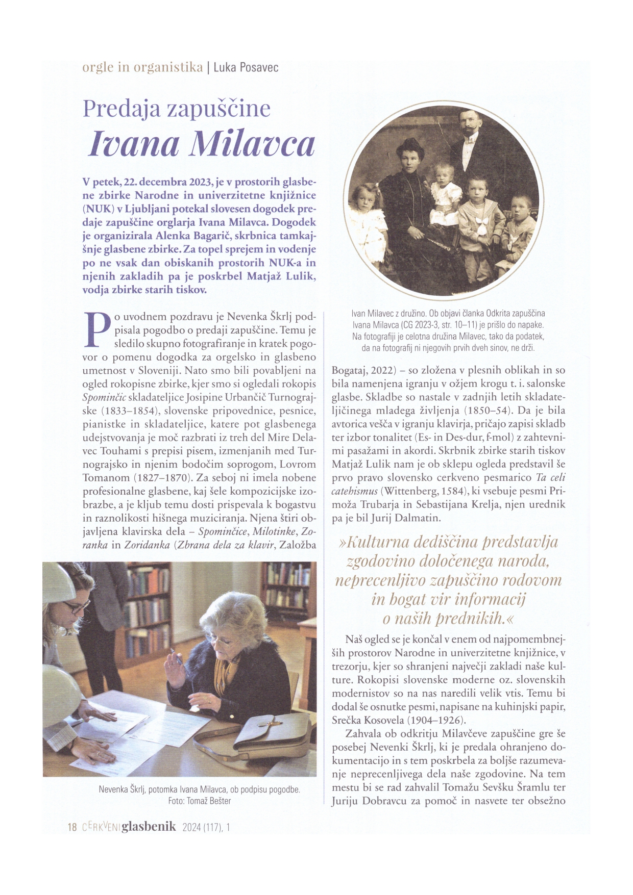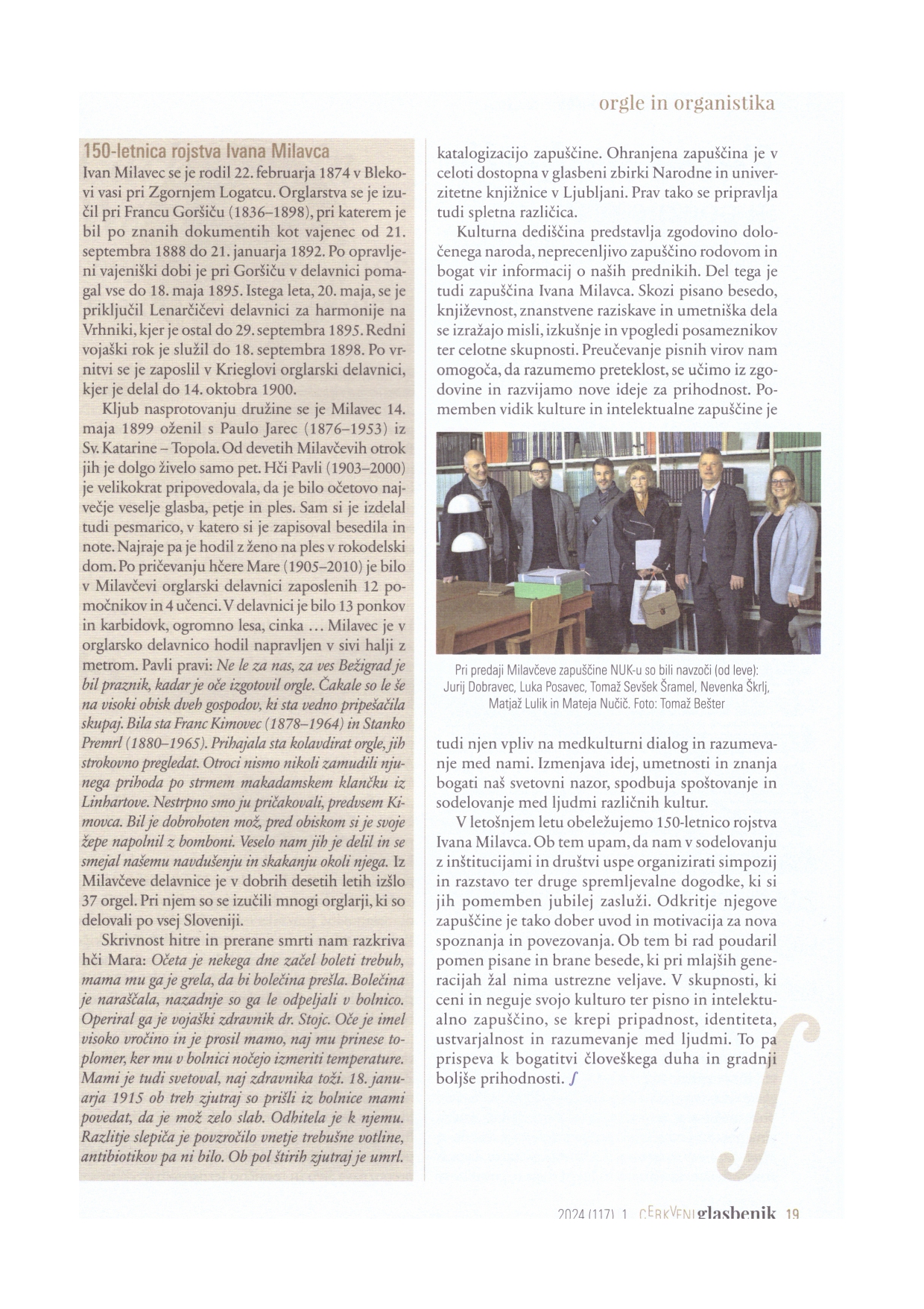 Vabljeni k branju članka o predaji zapuščine Ivana Milavca (učencu Franca Goršiča), ki je bil objavljen v Cerkvenem glasbeniku (2024, letnik 117, št. 1).