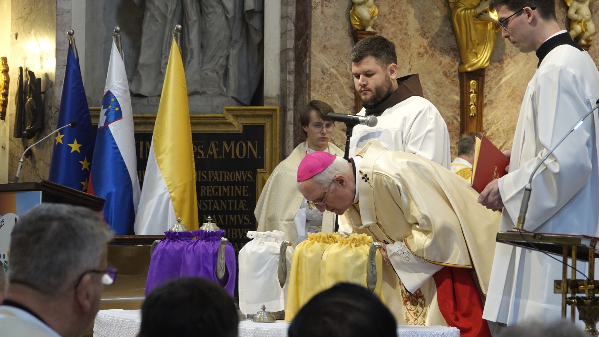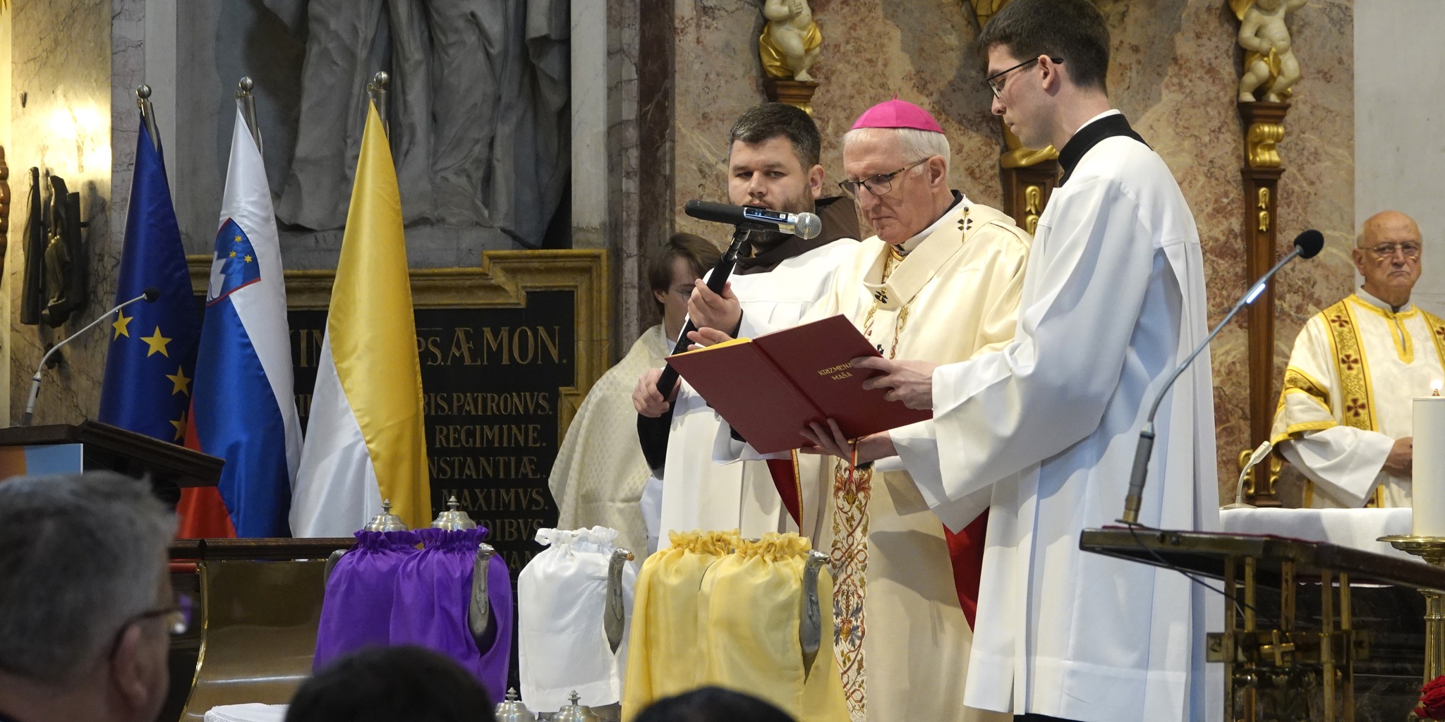 Na veliki četrtek dopoldne so slovenski škofje skupaj z zbranimi duhovniki in verniki v stolnih cerkvah slovenskih škofij darovali krizmene maše, ki so ime dobile po sveti krizmi – oljčnem olju, nad katerim škof zmoli posvetilno molitev. Olje posvečuje le škof, obred posvetitve pa se opravlja enkrat na leto. Duhovniki pri krizmeni maši tudi obnovijo duhovniške obljube. V ljubljanski stolnici sv. Nikolaja je mašo ob somaševanju več kot sto duhovnikov, pomožnih škofov dr. Franca Šuštarja in dr. Antona Jamnika, upokojenih nadškofov dr. Antona Stresa in Stanislava Hočevarja daroval nadškof metropolit Stanislav Zore.