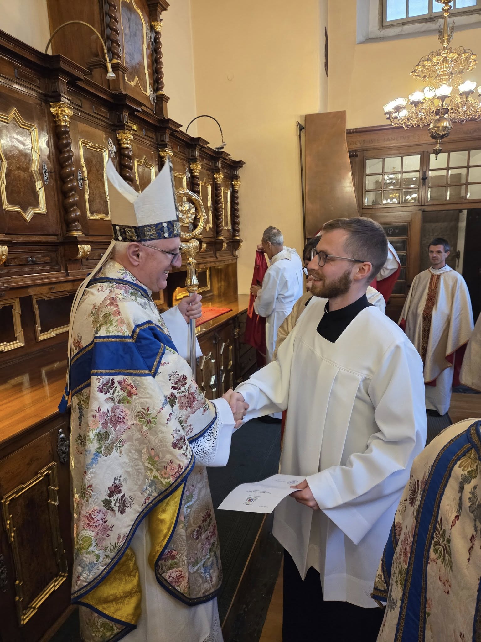 V četrtek. 29. 5., smo slovesno obhajali praznik Jezusovega vnebohoda. Pri maši je bil bogoslovec Peter Černe sprejet med pripravnike za diakonat in prezbiterat ter oblekel talar.