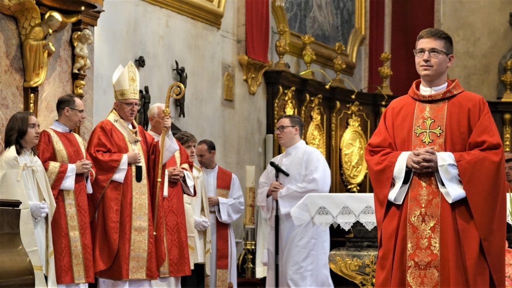 S polaganjem rok in molitvijo so bili v nedeljo, 18. junija 2023, v ljubljanski stolnici posvečeni štirje stalni diakoni: Tomaž Kogovšek iz župnije Zagorje ob Savi, Dušan Mihelčič iz župnije Dolnji Logatec, Branko Nimac iz župnije Čemšenik in Janez Rožman iz župnije Predoslje. Slovesno mašo je ob somaševanju pomožnega škofa Franca Šuštarja, njihovih župnikov in številnih duhovnikov, v navzočnosti njihovih družin, svojcev, prijateljev in širnega občestva vodil nadškof metropolit Stanislav Zore. Slavje je s kora spremljal stolni pevski zbor sv. Nikolaja z organistom in zborovodjo Gregorjem Klančičem.