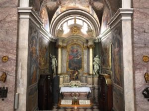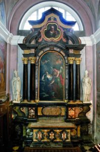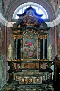 Poslikal jih je Giulio Quaglio s sinom Raffaelom in pomočniki v letih 1721-1723. Oltarja v kapelah sv. Marije Magdalene in sv. Barbare sta tirolsko delo; marmorirana podstavka pa je izdelal Kamničan Matija Ozbič, ki je mikaven po svojih s staro tehniko v štuku iz marmornatega prahu ulitih plastikah, sicer pa se je izživlja] v hladnem nazarenstvu.