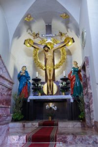 Čudodelni gotski križ v kapeli sv. Križa poleg prižnice je obnovil slovenski arhitekt JOŽE PLEČNIK (1872-1957), ki je to kapelo popolnoma prenovil. Na levo stran oltarne mize je postavil marmorni krstilnik (ta je zdaj V prezbiteriju na levi strani). Od ob eh lesenih pozlačenih kipov Marije in sv. Janeza Evangelista, ki sta prvotno obdajala razpelo, je Janezov kip premestil v vdolbino na desni strani marmornih stopnic, Marijin kip pa je